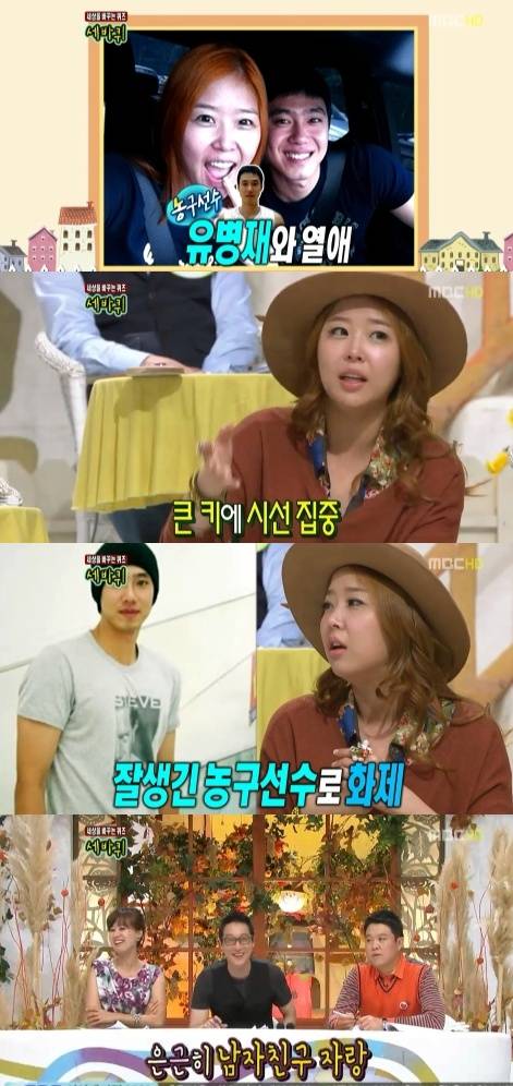 신지가 10월29일 방송된 MBC '세상을 바꾸는 퀴즈-세바퀴'에서 3살 연하의 남자친구인 농구선수 유병재와 열애에 대해 입을 열었다.