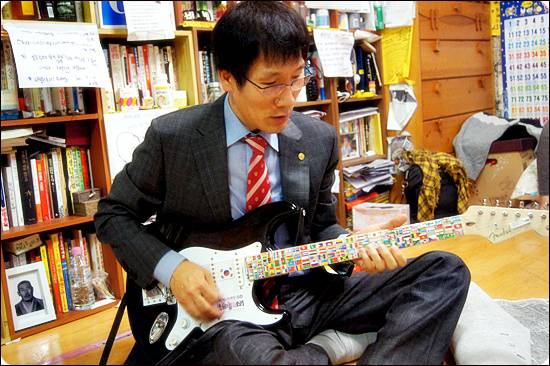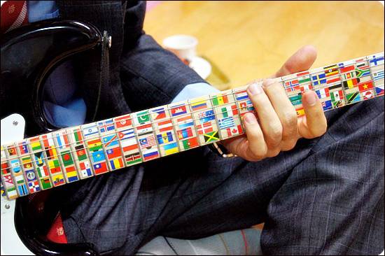 류비빔씨의 목표는 전주의 비빔문화를 널리 알리는 것이다. 내년에는 뉴욕에 갈 예정이다. 뉴욕 한복판에서 비빔 강의를 하고. 자신이 손수 만든 비빔기타로 거리공연도 할 예정이다. 비빔기타가 뭐냐고? 일반 기타 운지판에 각 나라 국기들을 인쇄해서 붙여놓은 것이다. 비빔문화를 얘기할 때 빠지지 않는 '조화'와 '균형'이 뉴욕에서 실현 될 날도 얼마 남지 않았다. 세계여러 나라들은 비빔 기타 소리 위에서 비벼지고, 조화로운 하모니를 이룰 테니. 오마이뉴스 아이폰 앱 출시! 지금 다운받으세요.