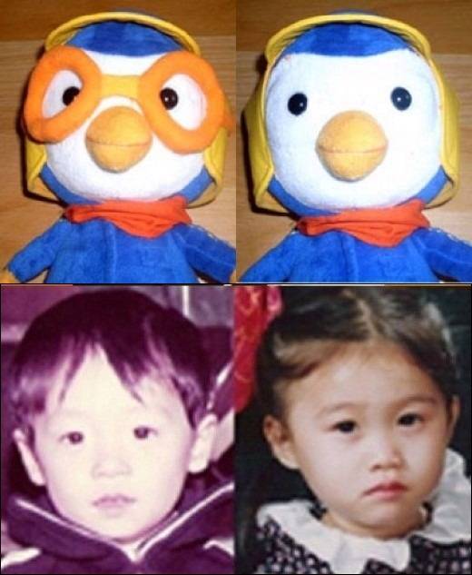 이 외에도 인기 만화 캐릭터 뽀로로의 '안경 벗은 모습'을 보고 무릎을 친 네티즌도 많다. 유재석의 아내 MBC 나경은 아나운서의 유년 시절 사진이 공개되며, 두 사람의 닮은 외모가 포털사이트 검색어 순위 상위에 랭크되기도 했다.