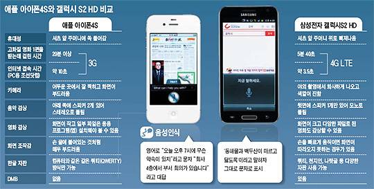 아이폰4S, 친근하고 말 잘듣는 비서 對 갤럭시S2 HD, 일처리 빠른 엘리트 비서