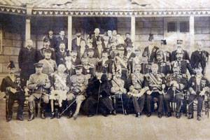↑ 을사조약 체결 뒤 찍은 한일 수뇌부의 기념사진. |