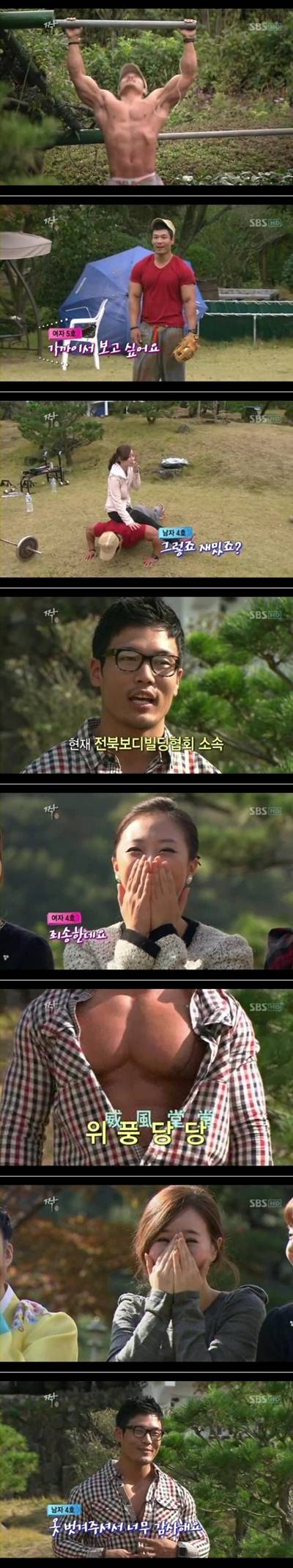 자기소개 시간에 남자4호는 "직업은 개인트레이너고 두 번째 직업은 보디빌더 선수다. 현재 전북보디빌딩협회 소속이다"고 말했고 여자4호는 "죄송한데 몸매 좀 보여주면 안되냐?"고 물었다.