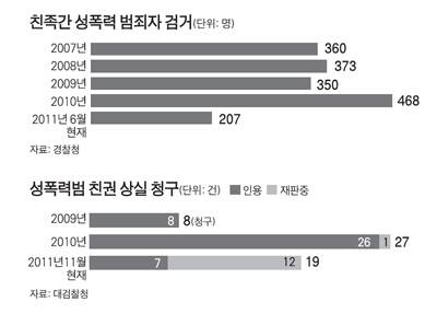 문제는 피해자를 보호할 제도는 있지만 효율적으로 가동되지 못한다는 점이다. 근친 성폭행 피해자 보호를 위한 대표적 제도는 친권 상실 청구제도. 2007년 8월 도입된 이 제도는 아동ㆍ청소년 대상 성범죄 사건에서 피해자의 친권자나 후견인이 성범죄 가해자일 경우 검사가 그에 대해 친권 상실 선고를 청구할 수 있다는 내용이다. 하지만 이 제도는 도입 2년이 지난 2009년 9월에야 의정부지검 고양지청에서 처음 청구됐고, 최근 3년간 청구 건수도 54건에 그쳤다.