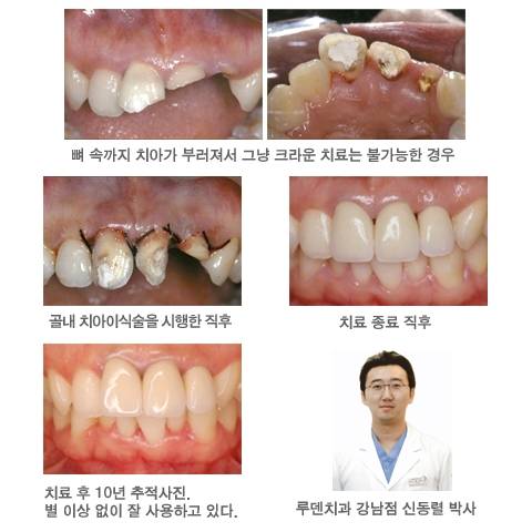신동렬 박사는 3개의 치아를 골내 치아이식술을 시행하여 10년간 추적하여 이번에 세계외상학회지의 호평을 받으며 증례보고를 실었다. 특히 외상환자나 교통사고로 인해 치아가 깊게 부러진 경우, 이러한 방법은 큰 도움이 될 거라고 덧붙였다.