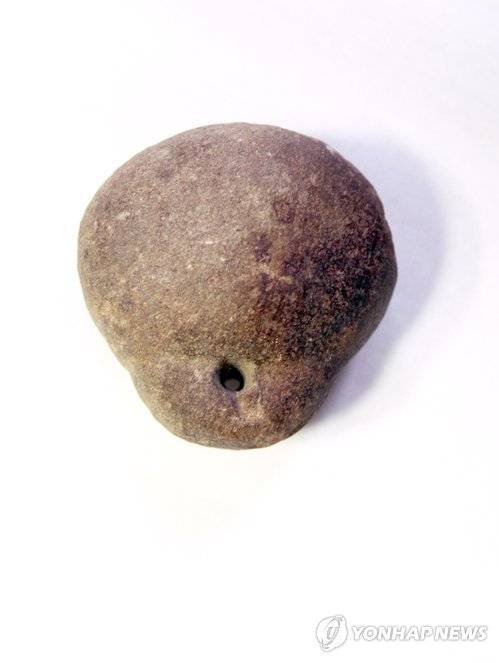 (울산=연합뉴스) 이상현 기자 = 23일 밝은사회 울산클럽이 울산박물관에 기증한 석제 저울추. < 지방기사 참조 >