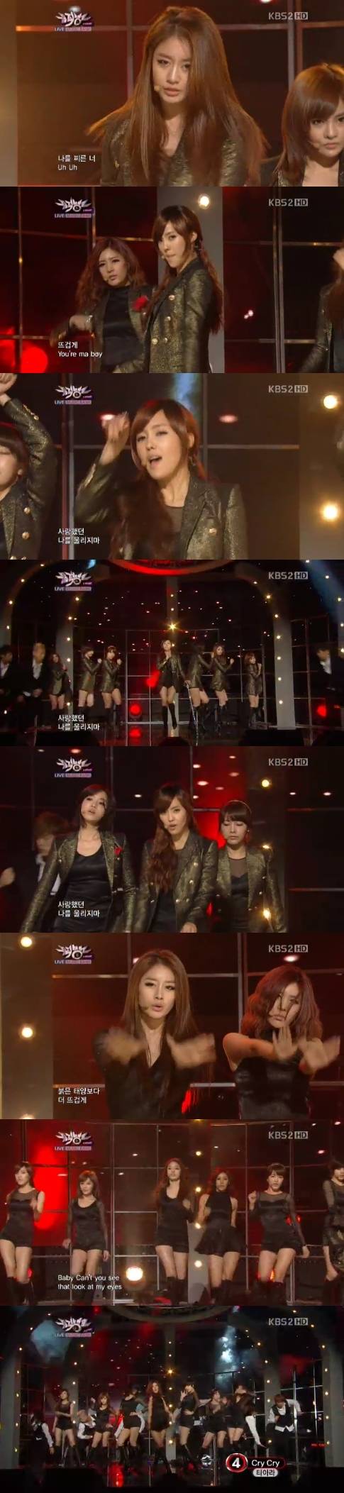 티아라는 11월25일 방송된 KBS 2TV '뮤직뱅크'에서 'Cry Cry'(크라이크라이)를 열창했다.