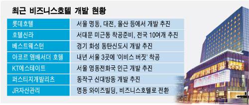 베스트웨스턴도 경기 화성 동탄신도시에 비즈니스호텔 건설을 추진 중이다. 자산운용사가 호텔을 매입하고 호텔체인이 엔드유저로 위탁경영을 맡는 구조다. 아코르앰배서더호텔도 내년 중 서울시내 3곳 이상에 하루 객실 사용료가 8만원대인 비즈니스호텔 '이비스버짓'을 착공할 계획이다.