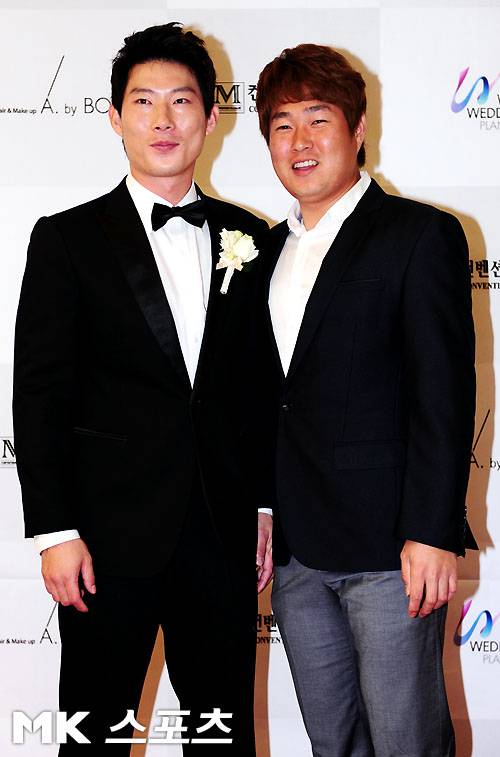 양의지가 4일 오후 서울 삼성동 컨벤션디아망에서 열린 고영민과 신부 서혜연양의 결혼식에 참석해 포즈를 취하고 있다.