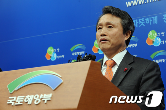 권도엽 국토해양부 장관이 7일 오전 경기도 과천 국토해양부에서 '주택시장 정상화 및 서민주거안정 지원방안'을 발표하고 있다. 과도한 시장규제 철폐를 주요내용 으로 하는 이번 부동산 대책은 다주택자 양도세 중과 폐지와 재건축 초과이익 부담금 2년 부과 중지, 투기과열지구 해제 등이 있다.