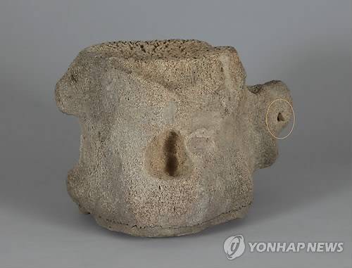 (서울=연합뉴스) 울산 황성동 유적 출토 신석기시대 작살 꽂힌 고래뼈. 국립중앙박물관의 구석기실·신석기실 개편에 따라 이곳에 전시된다. 2011.12.9 < < 문화부 기사참조, 국립중앙박물관 제공 > >