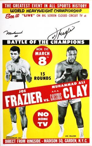 당시의 신기술인 '폐쇄회로 TV'를 통해 방영이 되었기에 이 경기는 극히 일부만 볼 수 있었고 대부분은 라디오나 뉴스를 통해 소식을 들었습니다. 전 세계의 관심이 있던 초대박 이벤트에서 초반엔 알리가 분위기를 잡았지만 중반 이후 프레이저가 분위기를 가져갔고 15라운드에 KO를 성공시켜 점수를 역전시킨 덕분에 판정승을 거둡니다.