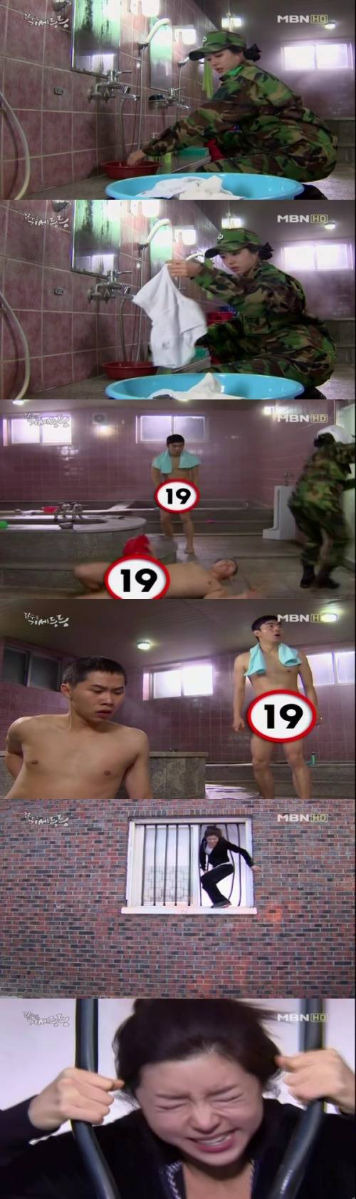 이한별의 굴욕은 여기서 그치지 않았다. 남자 목욕탕에 군번줄을 두고 왔기 때문. 이한별은 군번줄을 찾다 사병들의 습격을 받았다.