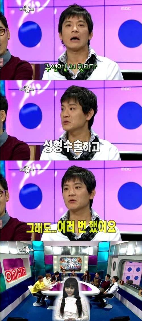 이날 방송에서 정성호는 '주연아' 속 유행어를 선보였다. 이에 MC 김구라가 "요즘 김주연 씨는 뭐하나"라고 묻자 "주연이는 지금 성형수술하고, 예뻤는데도 여러 번 하고 쉬고 있다"라고 답해 웃음을 자아냈다.
