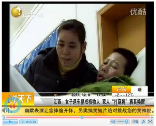 지난 10월 13일 교통사고로 식물인간 상태가 된 중국 장시성에 사는 중년여성 간쉐메이는 의식을 되찾을 확률이 1만분의 1이라는 절망적인 의사의 진단을 받았다.