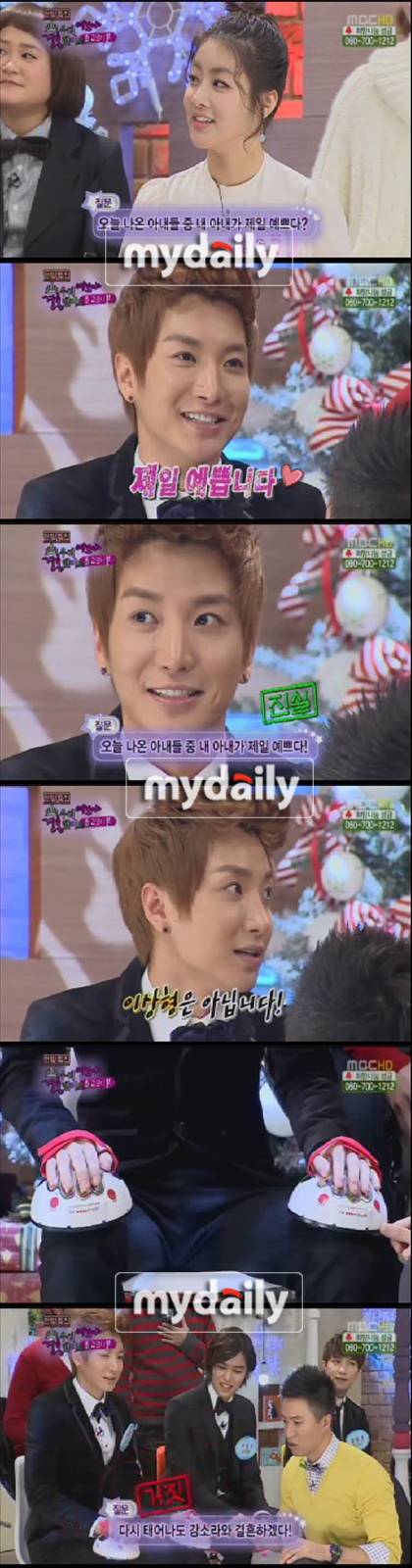 이날 방송에서는 거짓말 탐기지를 이용, 부부사이의 마음을 알아보는 시간을 가졌다. 이에 이특은 '아내가 '우결' 출연자중 가장 예쁘다'는 질문을 받았고, 그는 "맞다"고 대답했다. 그 결과 이특의 대답은 진실이었다.