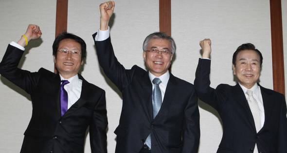 민주통합당 소속인 문재인(58) 노무현재단 이사장, 문성근(58) '국민의 명령' 대표, 김정길(66) 전 행정자치부 장관이 4·11 국회의원 선거에서 부산 지역구에 출마하겠다고 26일 공식 선언했다.
