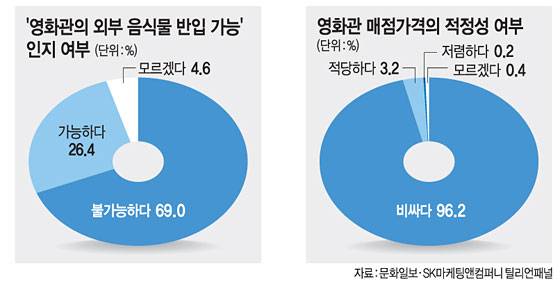 문화일보가 온라인 시장 조사기관인 SK마케팅앤컴퍼니 틸리언패널과 공동으로 지난해 12월22일부터 26일까지 5일 동안 20세 이상의 성인 남녀 500명을 대상으로 설문조사(오차범위 ±4.38%포인트)를 한 결과, 상영관의 외부 음식물 반입 허용 사실을 알고 있는 국민은 10명 중 7명에 불과했다.