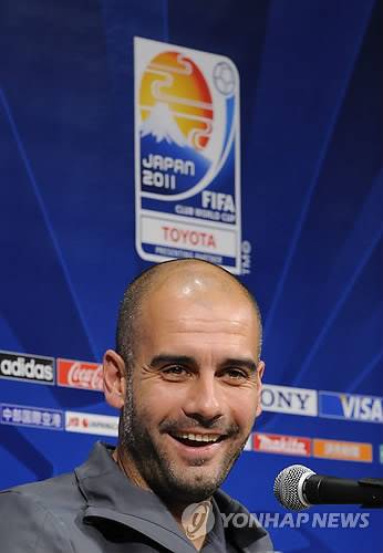 epa03050733 (FILE) A file picture dated 17 December 2011 shows FC Barcelona coach Pep Guardiola speaking during a press conference in Yokohama, near Tokyo, Japan. Guardiola was chosen on 06 January 2012 as the best club coach in 2011 by the International Federation of Football History and Statistics (IFFHS). Guardiola obtained 201 points in the voting made by the 81 IFFHS's experts from all over the world, as Portuguese Jose Mourinho, coach of Real Madrid, had 112 points, and Sir Alex Ferguson (Manchester United) 107. EPA/FRANCK ROBICHON < 연합뉴스 모바일앱 다운받기 >< 포토 매거진 >< 저작권자(c)연합뉴스. 무단전재-재배포금지. >