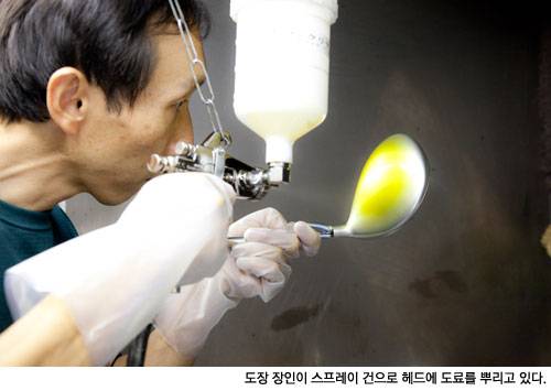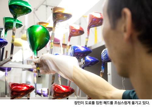 도장 장인들은 그래서 고도의 집중력을 발휘하며 색상 견본에 맞게 스프레이 건으로 클럽과의 거리, 도료의 양을 조절해 가며 작업한다. 드라이버나 페어웨이 우드는 모델에 따라 다르지만 건조시키면서 여섯 차례 정도 겹쳐 발라가며 도장을 한다.