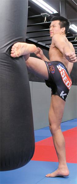 정찬성이 11일 서울 대림동 코리안탑팀 체육관에서 미들킥을 연습하고 있다. 정찬성은 "챔피언에 오른 뒤 군대에 가겠다"고 했다. [김진경 기자]정찬성(25·코리안탑팀)은 대전료로 100만원을 채 받지 못하는 파이터였다. 2010년 격투기의 메이저리그인 UFC에 진출했을 때도 최하 수준인 500만원을 받았다. 그러나 이제 그의 입지는 달라졌다. '코리안 좀비'란 별명으로 팬들의 관심을 받으면서 6배가 넘는 몸값에 UFC와 1월 중 재계약을 앞두고 있다. 그의 게임당 대전료는 최소 3000만원으로 예상된다. 그는 여기에 만족하지 않고 수억원을 받는 것을 목표로 하고 있다.