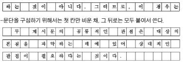 -문단을 구성하기 위해서는 첫 칸만 비운 채, 그 뒤로는 모두 붙여서 쓴다.