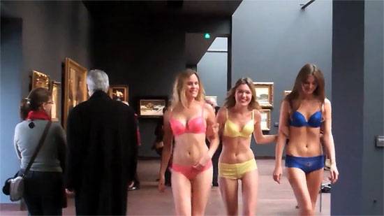 12일(현지시각) 영국 텔레그라프는 한 프랑스의 속옷회사가 오르세 미술관에 3명의 모델을 보내 옷을 벗는 돌발 행동을 하게했다고 보도했다.