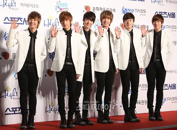 그룹 보이프렌드가 19일 오후 서울 방이동 올림픽공원 체조경기장에서 열린 '21회 하이원 서울가요대상'에 참석해 포즈를 취하고 있다.