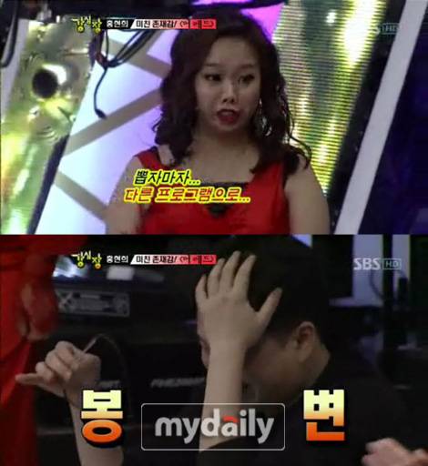이어 새해 '강심장'에 출연해 MC 이승기에게 "저 좋아하는 거 맞죠? 빠진 거 맞죠?"라는 자신의 유행어를 서슴없이 던지는 뻔뻔함으로 웃음을 자아냈다. 또 이날 개그맨 시험 당시 자신을 뽑아준 뒤 별다른 후원이 없던 '강심장' 박상혁 PD에게도 인정 사정없이 부채를 휘두르며 타박을 주는 강심장 면모을 보였다.