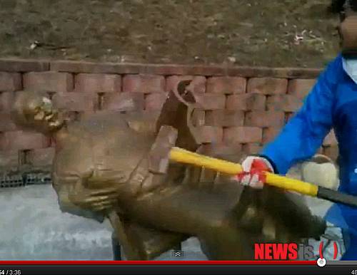 李대통령 조각상 깨뜨리는 동영상 유포 논란