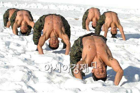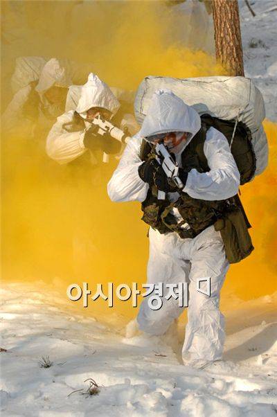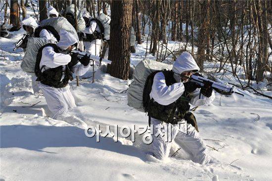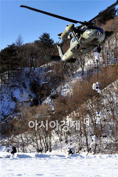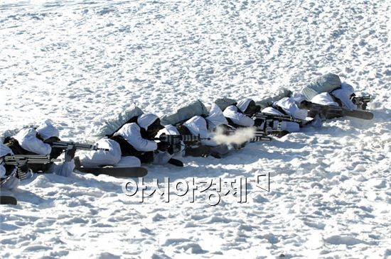 체감온도가 영하 30도에 달하는 이날에도 특전용사들은 상의를 벗고 눈밭을 달리거나 얼음 샤워를 하고 특공무술을 선보이는 등 체력단련을 했다. 또 헬기를 이용한 팀 단위 공중침투, 은거지(비트) 구축ㆍ매복, 적지역 정찰감시ㆍ타격 등 전술훈련을 했다.