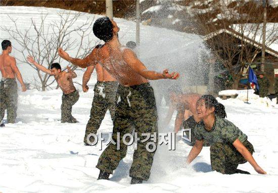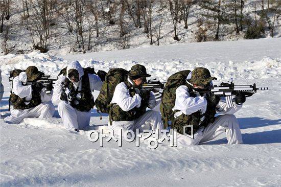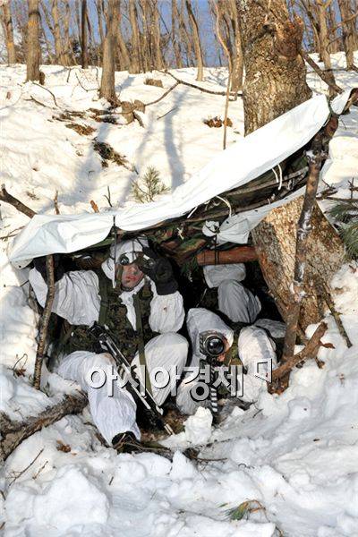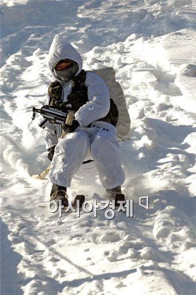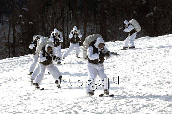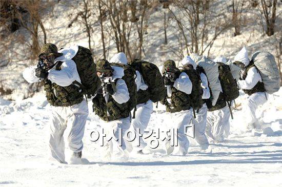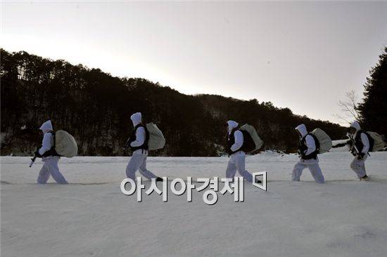 [사진=육군본부 김경호 서기관]눈 마사지, 설원 달리기, 얼음물 입수. '검은베레' 특전용사들이 매년 겨울마다 강원도 평창군 황병산 일대에서 8박9일간 '동계 설한지(雪寒地) 극복ㆍ생존훈련'을 이어가고 있다.