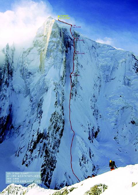 ↑ [월간산]스팬틱 북서벽에 K2 익스트림팀이 개척한 드림 2009. |