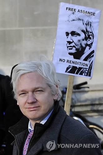 epa03088775 Wikileaks founder Julian Assange arrives at the Supreme Court in London, 02 February 2012. Wikileaks founder Julian Assange has entered the final stage of his legal battle to avoid extradition to Sweden to face questioning over sex crime allegations. After failing to persuade a British magistrates and the court of appeal that the cross border warrant issued for his arrest was invalid, Assange's legal team have now appealed to the supreme court in London to prevent his deportation. EPA/ANDY RAIN < 연합뉴스 모바일앱 다운받기 >< 포토 매거진 >< 저작권자(c)연합뉴스. 무단전재-재배포금지. >