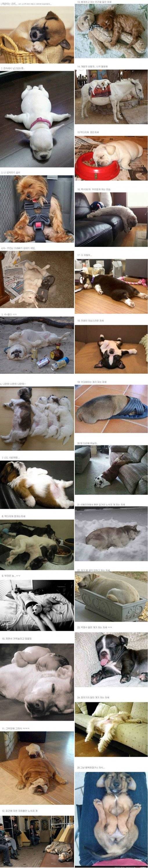 최근 한 커뮤니티 게시판에는 '강아지 잠자는 자세'라는 제목으로 25가지 포즈의 강아지 사진이 올라왔다.