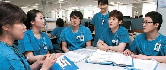 이 병원은 간호사 700여 명 중 남자가 42명이다. 주로 수술실·중환자실·응급실·회복실 등 '험한 분야'에서 일한다. 김효철(27) 간호사는 2010년 5월 중환자실에 배치됐다. 대입 당시 부산 고신대 간호학과를 지원하자 "남들처럼 공대 가서 평범하게 살지 남자가 웬 간호사냐"며 부모님이 만류했다고 한다. 그러나 '환자 얘기를 들어주는 것만으로도 치료에 도움이 된다'는 신념에 따라 간호사를 택했다. 김 간호사는 "간호사라는 게 자랑스럽다"고 말한다.