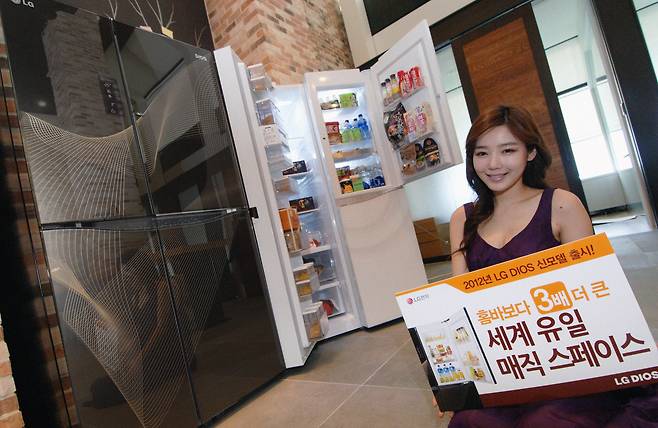LG전자는 15일 2012년형 디오스 양문형 냉장고 신제품 13종을 이달부터 국내 시장에 출시한다고 밝혔다.