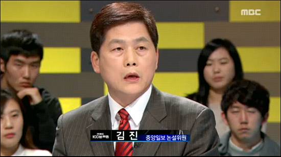 한 누리꾼은 "100분 토론에 나와서 중앙일보 김진은 존경한다고 하고, 중간 중간 나꼼수에 대해 한마디씩 더 비난하려고 하는 모습이 안쓰럽기까지 했다(*******lin)"고 평했다, "진중권, 조중동의 중앙일보 김진 논설위원에게 잘 보이고 싶었나?(***cps)"라고 비꼬는 시선도 있었다.