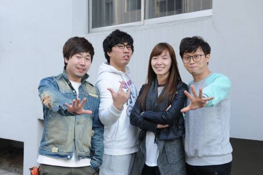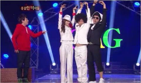 [이데일리 스타in 양승준 기자] "이명박!" 광화문 시위 현장에서 나온 소리가 아니다. KBS2 `개그콘서트` 코너 `용감한 녀석들`(정태호·박성광·양선일·신보라)의 도발. 네 명의 개그는 시작부터 당찼다. "MBC `해를 품은 달` 한가인, 김수현이랑 안 어울려. 유(You)! 유부녀" 신보라가 눈을 매섭게 뜨고 일격을 날렸다. 뿐만이 아니다. `개그콘서트` 서수민 PD도 `용감한 녀석들`의 먹잇감이 됐다. "`개그콘서트` PD 진짜 못생겼다." 박성광의 폭로는 계속됐다. "외모 지적받더니 (`개그콘서트` PD)보톡스 맞았다." 대단한 `강심장`이다. "방송 나가고 나니 사람들이 개그에 목숨 걸었느냐고 하더라." 정태호가 수줍게 웃었다. `용감한 녀석들`은 실제로도 대찰까? 그러자 박성광을 제외한 세 명이 한발 물러섰다. "우리 셋이 A형이다." `트리플A`가 모여 만든 `용감한 녀석들`. "개그맨 된 게 인생의 도전"이라는 이들의 소심한 개그 뒷담화를 들었다.