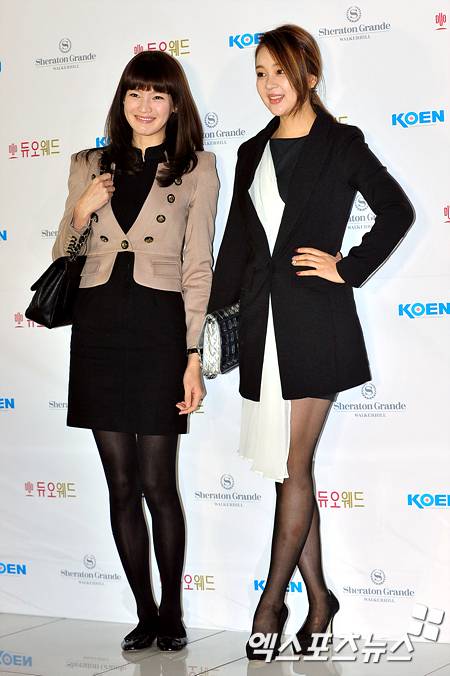 하객으로 참석한 정가은과 백보람이 포토타임을 갖고 있다.
