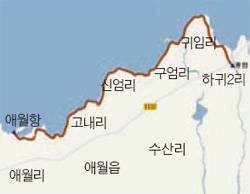 한적한 포구와 옛날 등대인 도대불, 전망대들이 고마운 길동무가 돼준다. 해안도로를 따라가며 각종 유적을 만나면 바다를 상대하며 살아온 섬사람들의 강인한 생명력을 느낄 수 있다. 오르막으로 이어지는 절벽 쉼터와 작은 포구가 내려다보이는 내리막길이 반복되는 이 길은 오감을 만족시키는 드라이브 코스다. 파도 소리는 느리게 들려오고 싱싱한 미역 냄새가 코끝을 자극한다.