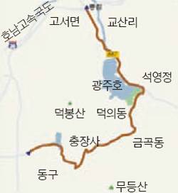 슬로시티(Slow City) 담양군 청평면이나 고서면의 인심 좋은 음식점에서 끼니를 해결하고 무등산의 기운을 받으러 차에 오르면 된다. 광주호 호반도로는 길지 않아도 가로수 사이로 보이는 무등산의 위용에 차를 세우는 운전자가 많다. 인근 광주호 생태공원은 주민들의 산책로로 인기가 많은 곳이다. 이 공원은 동식물의 휴식과 성장을 방해하지 않기 위해 야간조명을 하지 않는다.