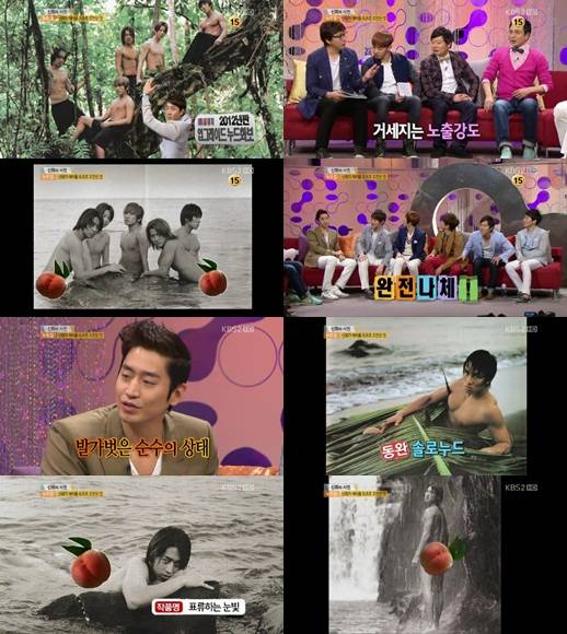 이 때 영상에는 신화 누드집 사진이 나왔고, 이들은 완전한 나체를 보이고 있어 놀라움을 자아냈다. 특히 에릭과 전진은 과감한 포즈에 도발적인 눈빛을 발산하고 있어 이목을 사로잡았다.