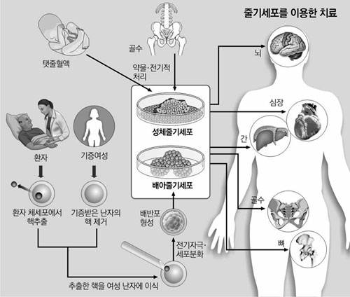 줄기세포는 신경, 혈액, 연골 등 인체의 특정 세포로 분화되기 전의 상태에 있는 세포를 가리키는 말. 자기재생능력(self renewal)과 분화능력(differenti-ation)을 갖추고 있어 피부, 간, 신장 등 신체 어느 조직으로든 변화할 수 있다. 이 때문에 각종 난치성 질환 치료의 열쇠가 될 수 있다는 점에서 높은 관심을 끌고 있다.