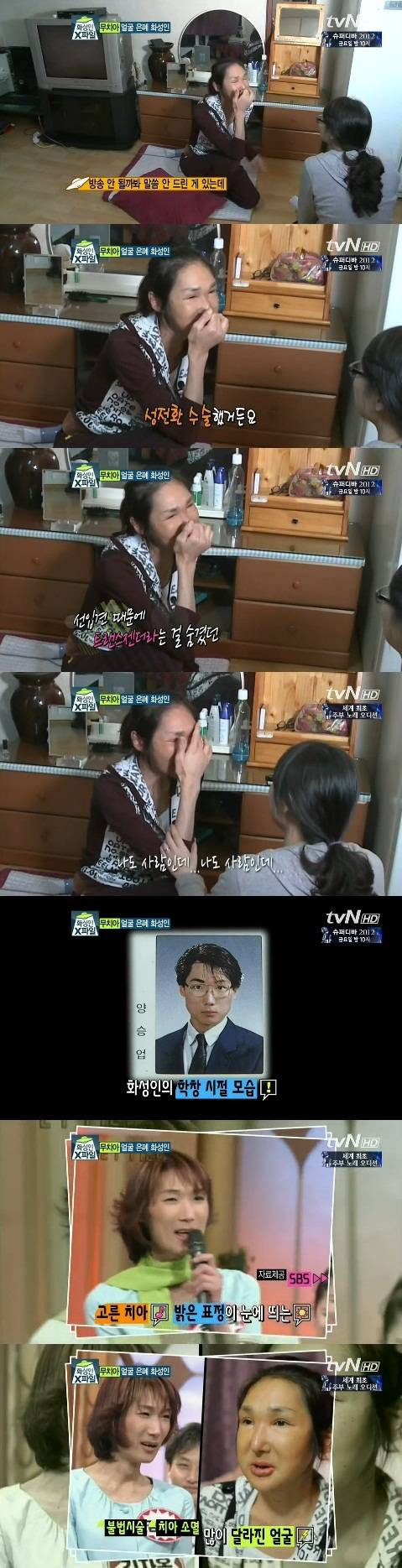 4월 2일 방송된 tvN '화성인 X파일'에서는 불법 성형 시술로 인해 치아가 없어지는 등 부작용을 겪은 얼굴은폐녀가 출연했다.