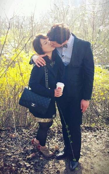 공개된 사진 속 두 사람은 모두 올블랙 패션을 보여 커플룩 같은 느낌을 자아낸다. 특히, 노란 개나리를 배경으로 입을 맞추고 있어 눈길을 끈다.