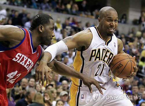 필라델피아는 21일(현지시간) 미국 인디애나주 인디애나폴리스의 뱅커스라이프 필드하우스에서 열린 2011-2012 미국프로농구(NBA) 정규리그 원정 경기에서 인디애나를 109-106으로 이겼다.