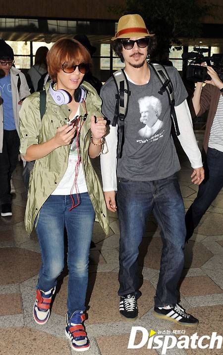 두 사람은 출국장에 들어설 때부터 밀착했다. 나란히 한 차에서 내려 함께 움직였다. 몸을 최대한 밀착 시키고 걸어가는 모습이었다. 두 사람은 끊임없이 대화를 나눴다. 그리고 눈을 맞추며 애정을 과시했다.