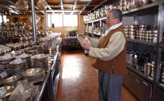 ↑ "이만하면 됐나?" 문경 공방에서 만든 작품을 들고. 그의 작품에는 60년 이상 구리와 불과 망치와 함께해온 그의 인생이 담겨 있다. |