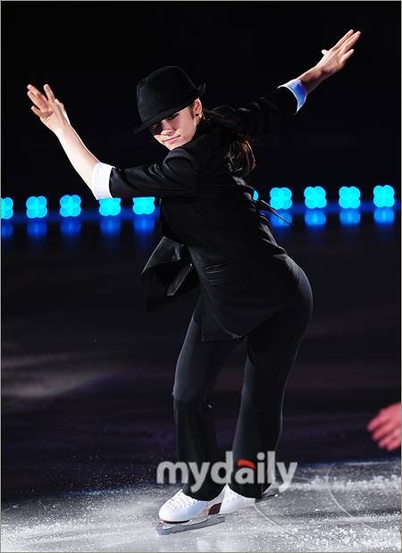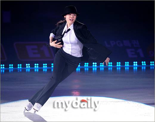 김연아는 4일 오후 서울 올림픽공원 체조경기장 특설 아이스링크에서 열린 'E1 올댓스케이트 스프링 2012' 아이스쇼에서 올 오브 미(All of me), 썸원 라이크 유(Someone like you) 등 새로운 갈라 프로그램을 선보였다. 특히 갈라 최초로 남자 변신을 시도한 김연아의 모습에 특설 아이스링크를 가득 메운 만여 명의 피겨 팬들은 열광했다.
