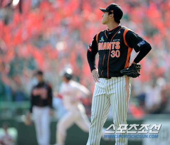 SK와 롯데의 주말 3연전 마지막날 경기가 6일 인천 문학구장에서 열렸다. 8회말 SK 최정에게 동점 솔로홈런을 허용한 롯데 최대성이 아쉬워하고 있다. 인천=허상욱 기자 wook@sportschosun.com/2012.05.06/